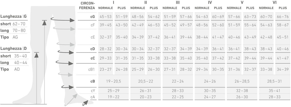Calze compressive per disturbi venosi avanzati e disturbi linfatici ad uno stadio iniziale in classe di compressione 2